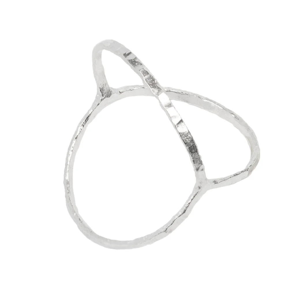 Przestrzenny, oryginalny ręcznie robiony pierścionek ze srebra. Młotkowanie nadaje mu niepowtarzalny wzór i trwałość. Pierścionek można nosić tradycyjnie na palcu, lub na zgięciu palca.