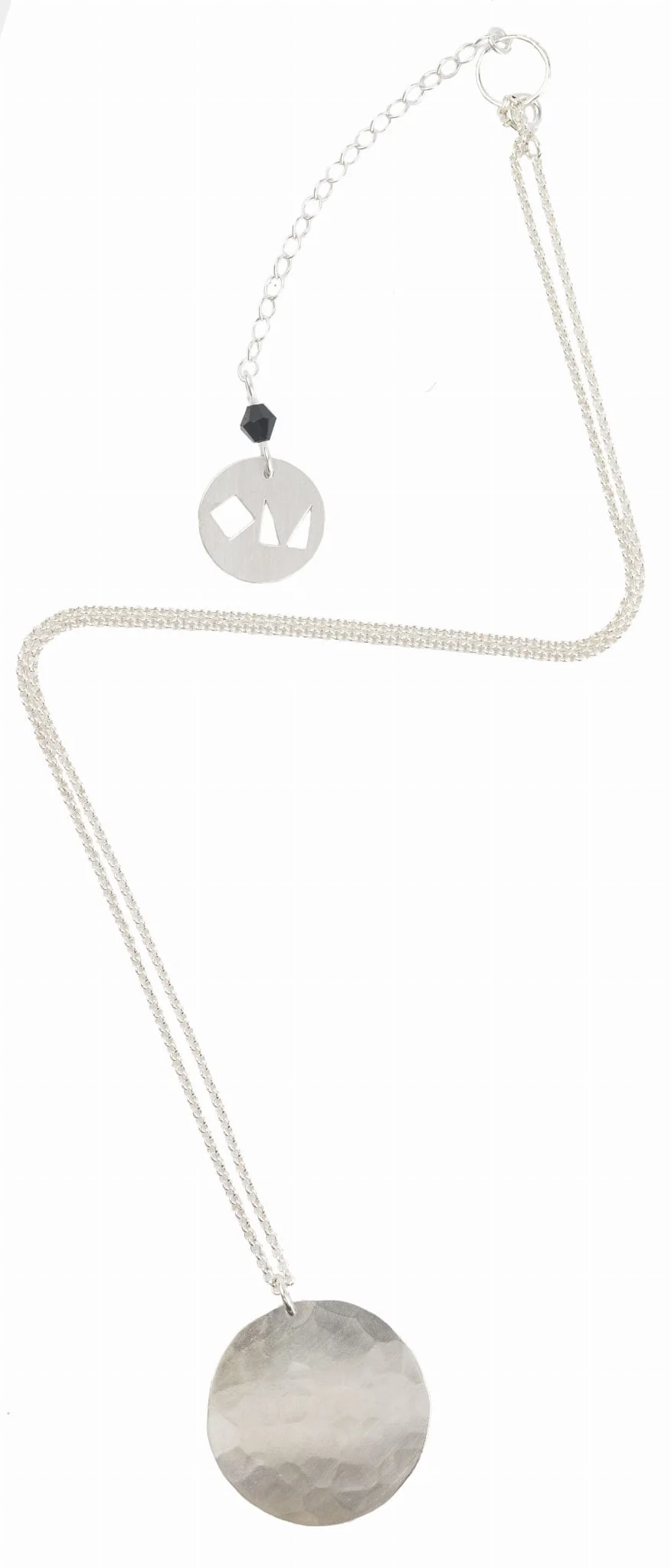 Naszyjnik wykonany jest w całości ze srebra próby 925. Wykonany jest w całości ręcznie. Jego powierzchnia jest młotkowana co nadaje mu unikatowy wygląd.