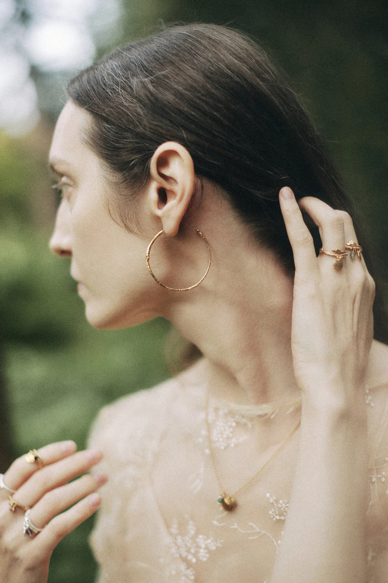 KALINA: kolczyki duże koła - gałązki ze srebra złoconego