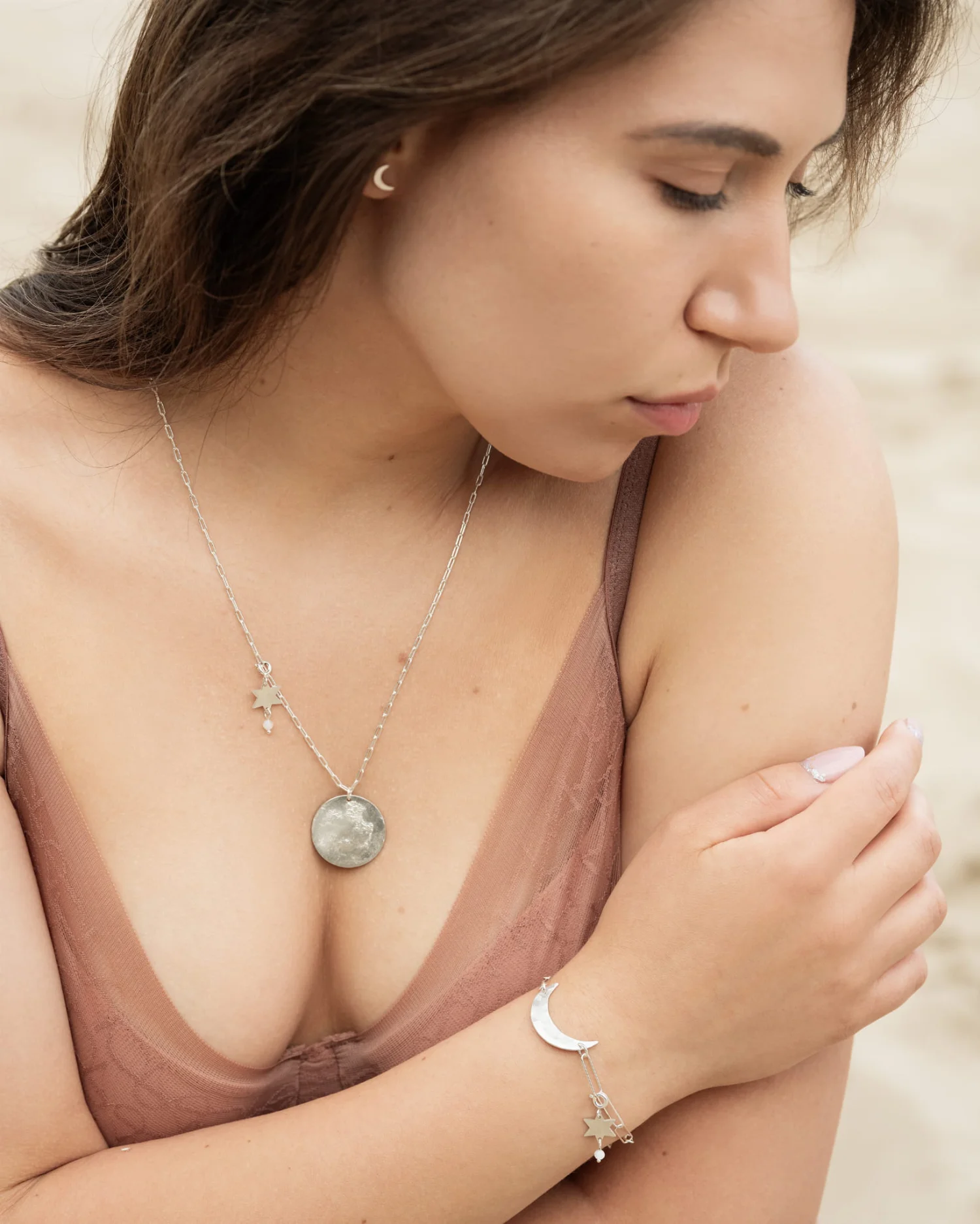 Piękne kolczyki półksiężyce, symbolizującym stałość w zmienności, życiową przemianę, odwieczne z nami współgranie i piękną, tajemniczą noc.