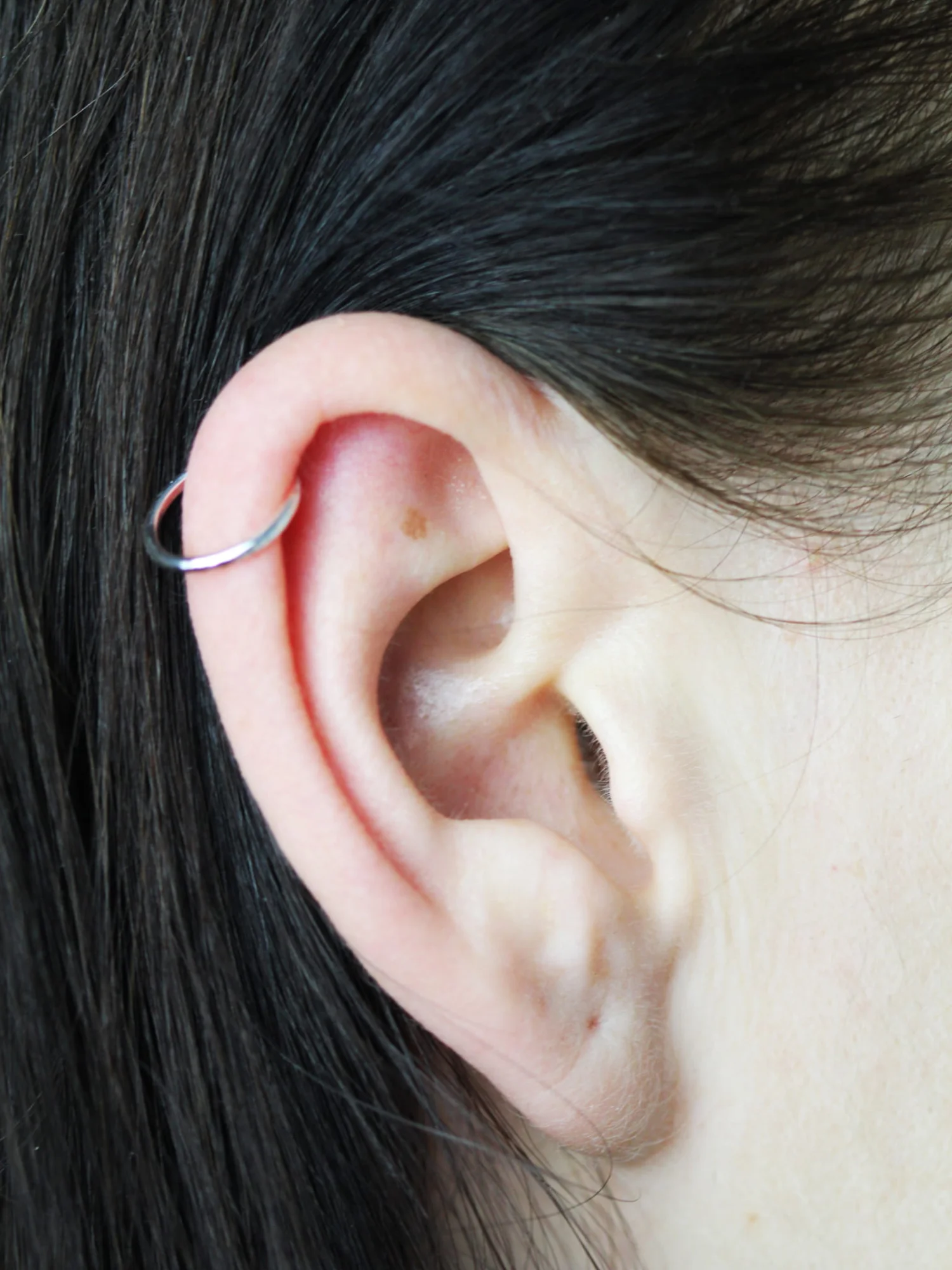 Prosta, pojedyncza nausznica, wykonana ręcznie ze srebra 925. Nie wymaga dziurki w uchu. Wygodna i wyjątkowa. Każda jest młotkowana co nadaje jej unikatowy wygląd i przez co pięknie się na niej załamuje światło.
