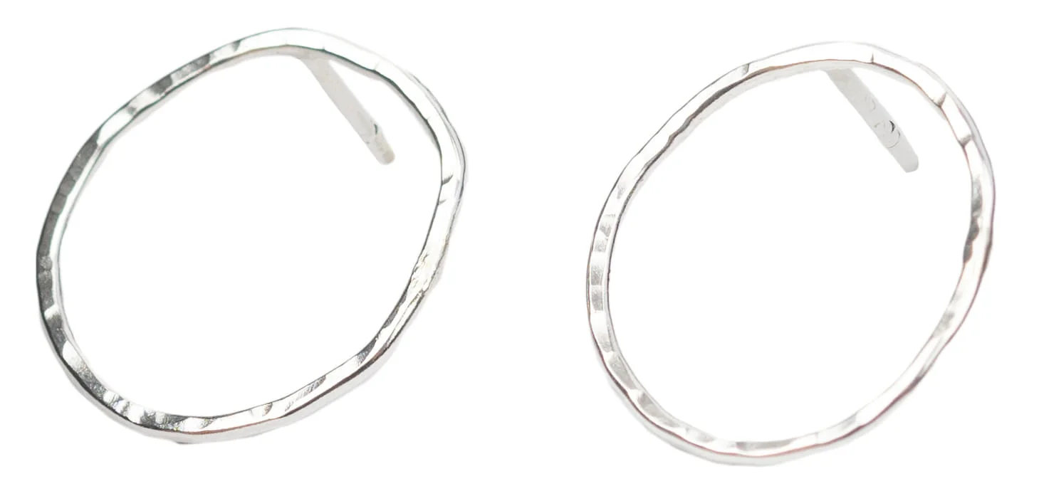Każdy kolczyk jest ręcznie kształtowany i młotkowany co nadaje mu ciekawą, nieregularną formę i niepowtarzalność.