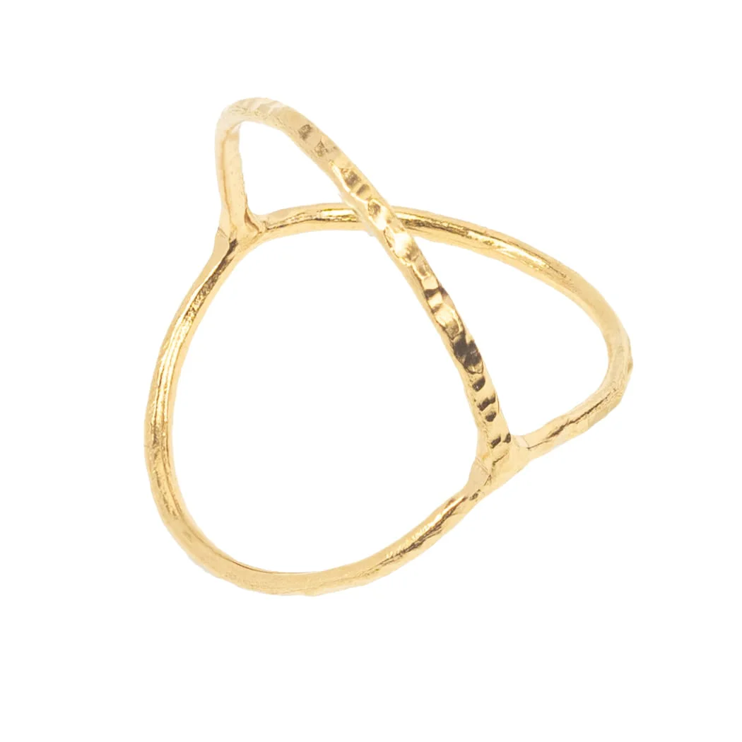 Przestrzenny, oryginalny ręcznie robiony pierścionek ze srebra pokrytego 24 karatowym złotem. Młotkowanie nadaje mu niepowtarzalny wzór i trwałość. Pierścionek można nosić tradycyjnie na palcu, lub na zgięciu palca.