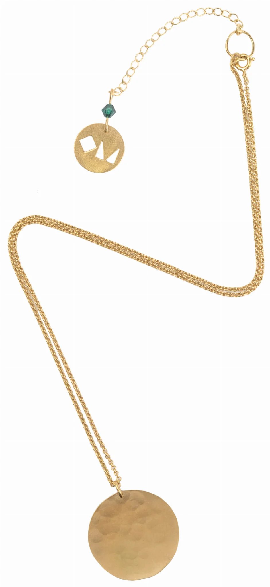 Naszyjnik wykonany jest ze srebra próby 925, galwanizowanego w 24 karatowym złocie. Wykonany jest w całości ręcznie. Jego powierzchnia jest młotkowana co nadaje mu unikatowy wygląd.