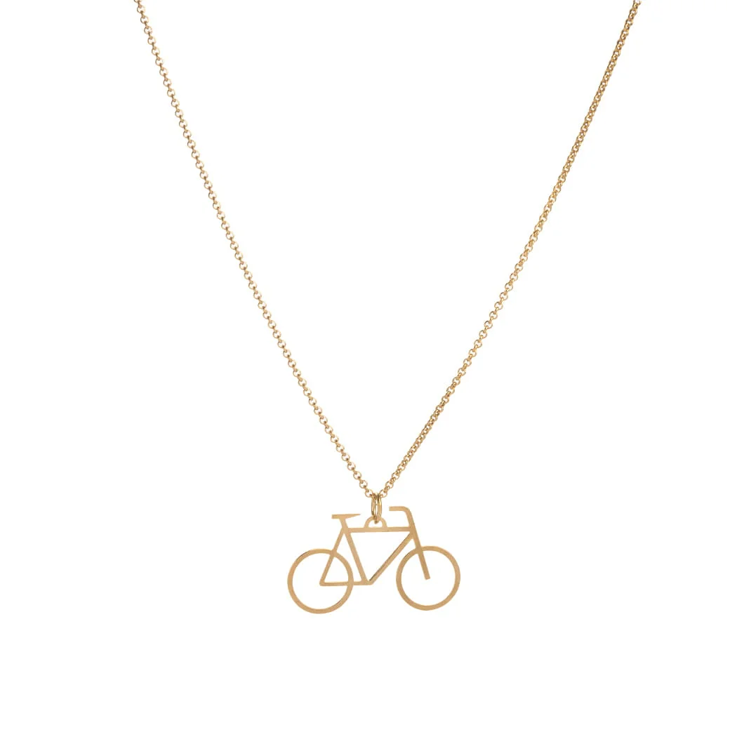 I Love My Bike to naszyjnik z małym rowerkiem wyciętym w srebrze próby 925 i pokrytym 24 karatowym złotem.