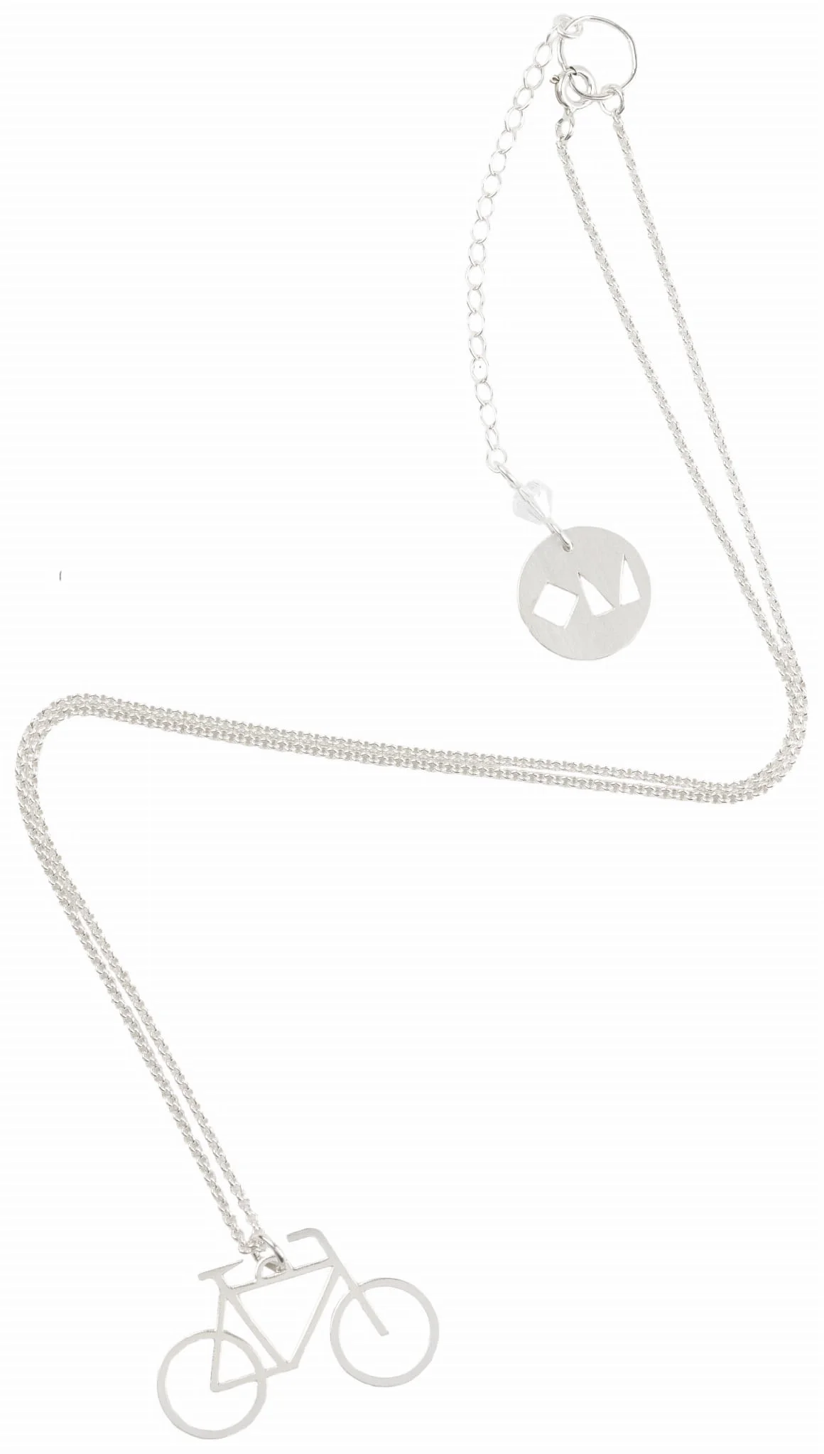 I Love My Bike to naszyjnik z małym rowerkiem wyciętym w srebrze próby 925.