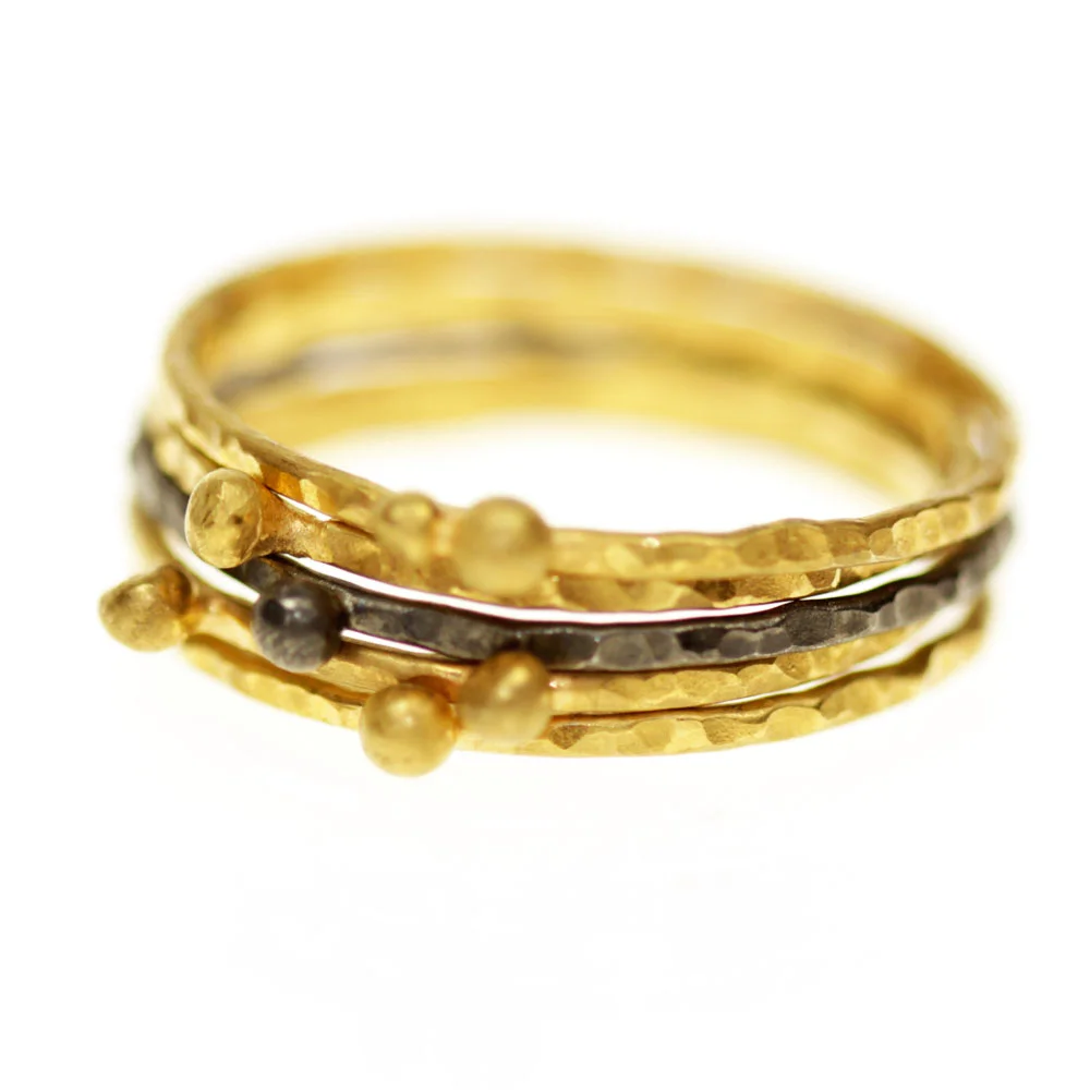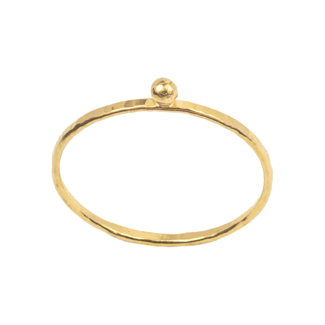 Piękna i delikatna lecz bardzo mocna ręcznie robiona obrączka z nieregularną bryłką z mosiądzu pokrytego 24 karatowym złotem. Młotkowanie nadaje jej niepowtarzalny wzór i trwałość.