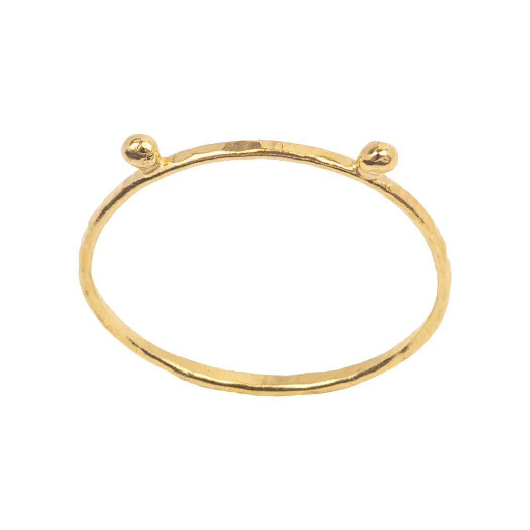 Piękna i delikatna lecz bardzo mocna ręcznie robiona obrączka z nieregularnymi bryłkami z mosiądzu pokrytego 24 karatowym złotem. Młotkowanie nadaje jej niepowtarzalny wzór i trwałość.
