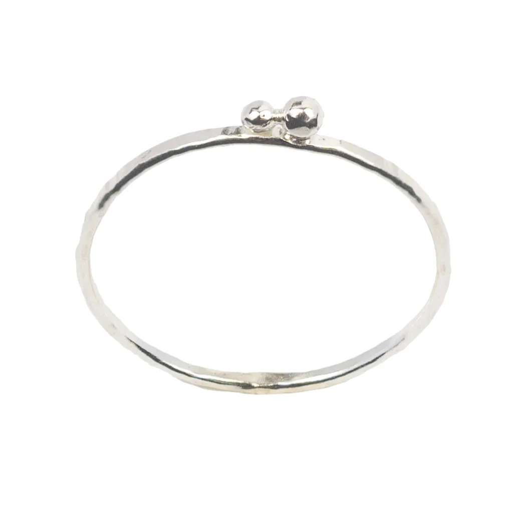 Piękna i delikatna lecz bardzo mocna, ręcznie robiona obrączka z nieregularnymi bryłkami ze srebra próby 925. Młotkowanie nadaje jej niepowtarzalny wzór i trwałość.