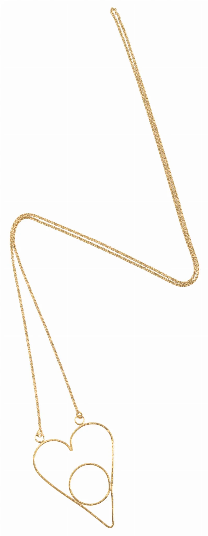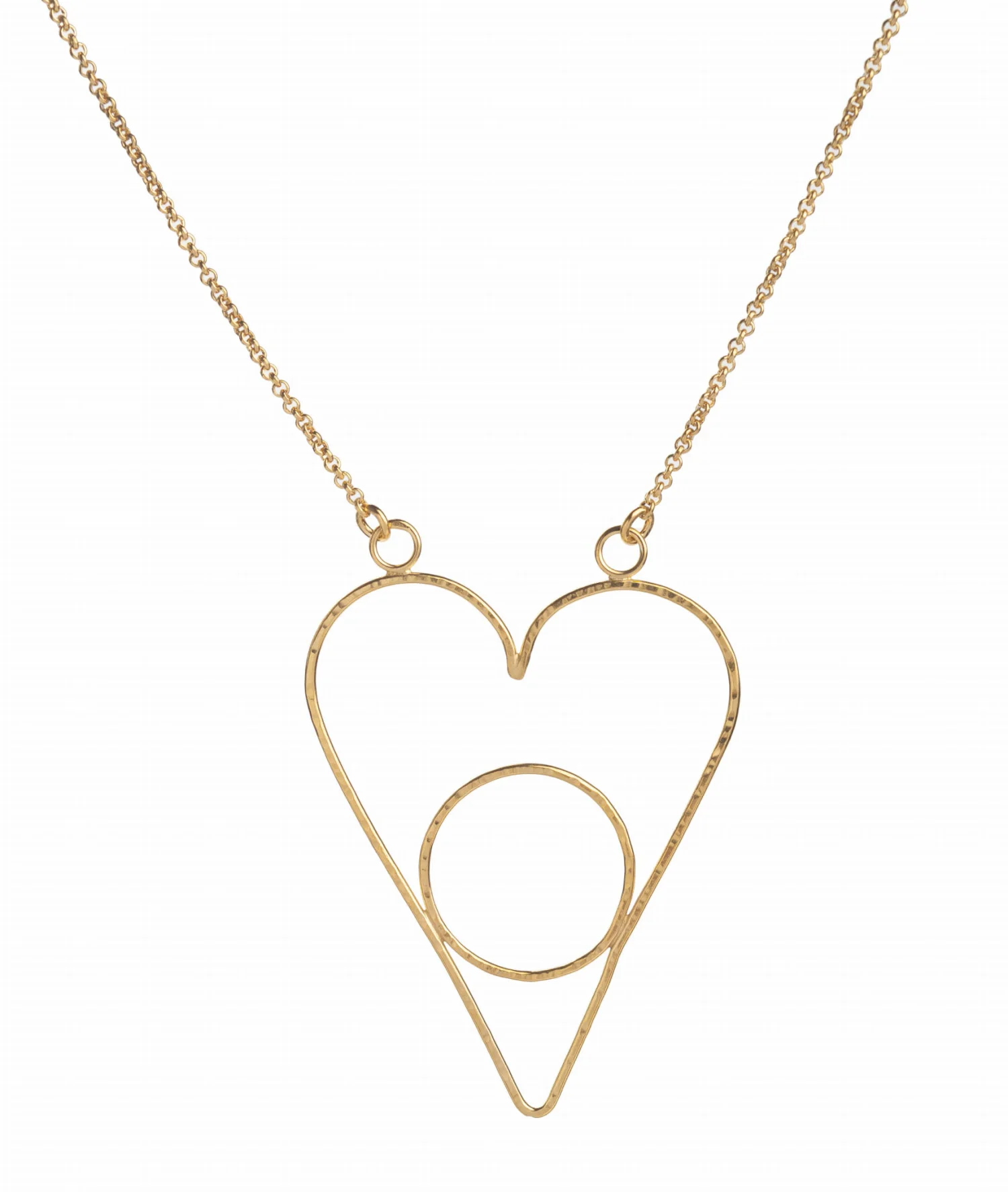Naszyjnik jest wykonany ręcznie ze srebra próby 925, lutowany a następnie młotkowany, co nadaje metalowi niepowtarzalną fakturę. Następnie jest pokryty warstwą 24 karatowego złota. Jest leciutki, trwały i bardzo wygodny.