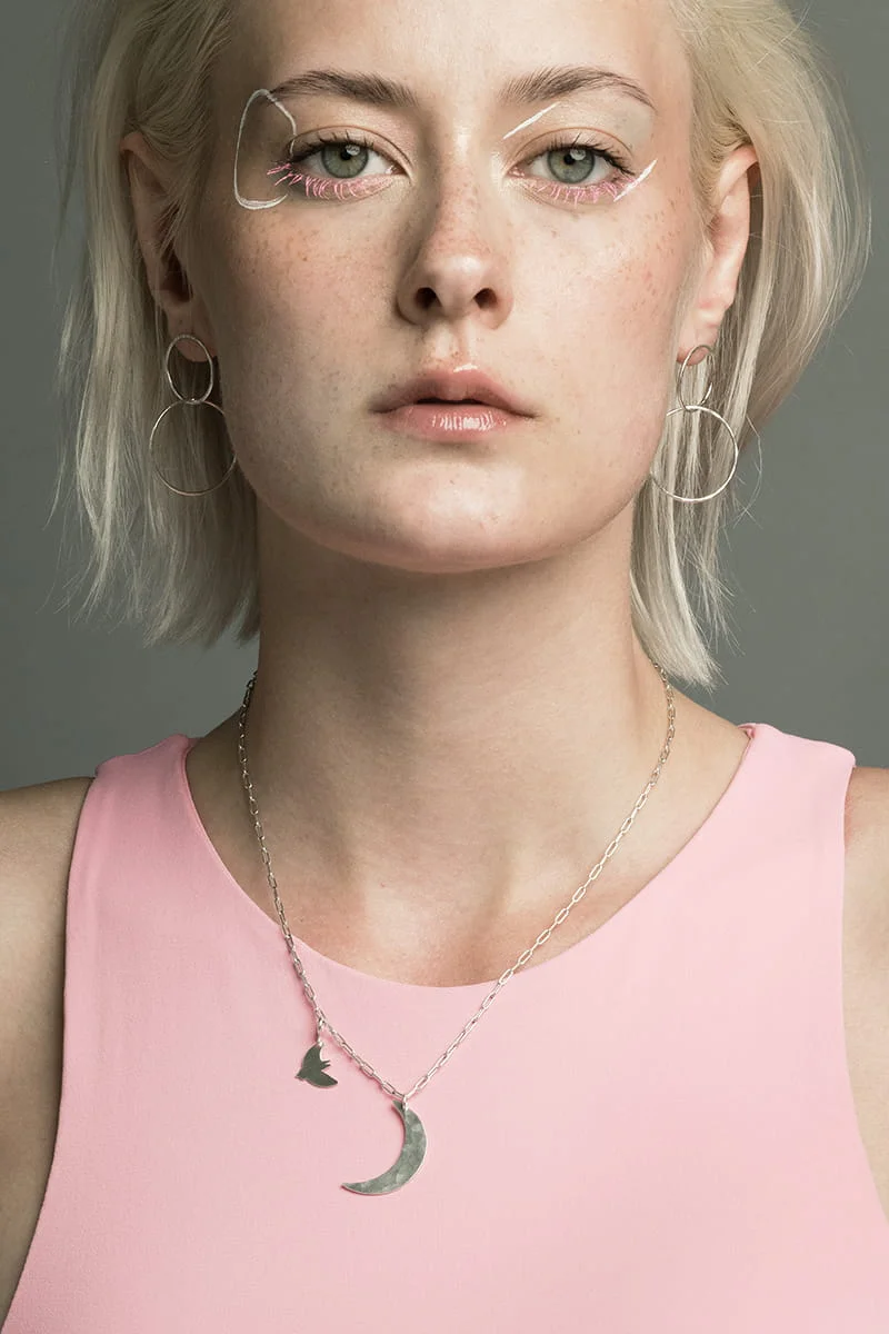 Moon & Swallow: srebrny naszyjnik z księżycem i jaskółką