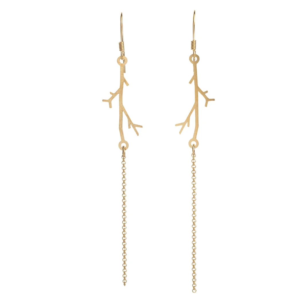 Gałązki są wykonane ze srebra, a następnie pokryte 24 karatowym złotem. Dodatkowo kolczyki zdobią delikatne łańcuszki.